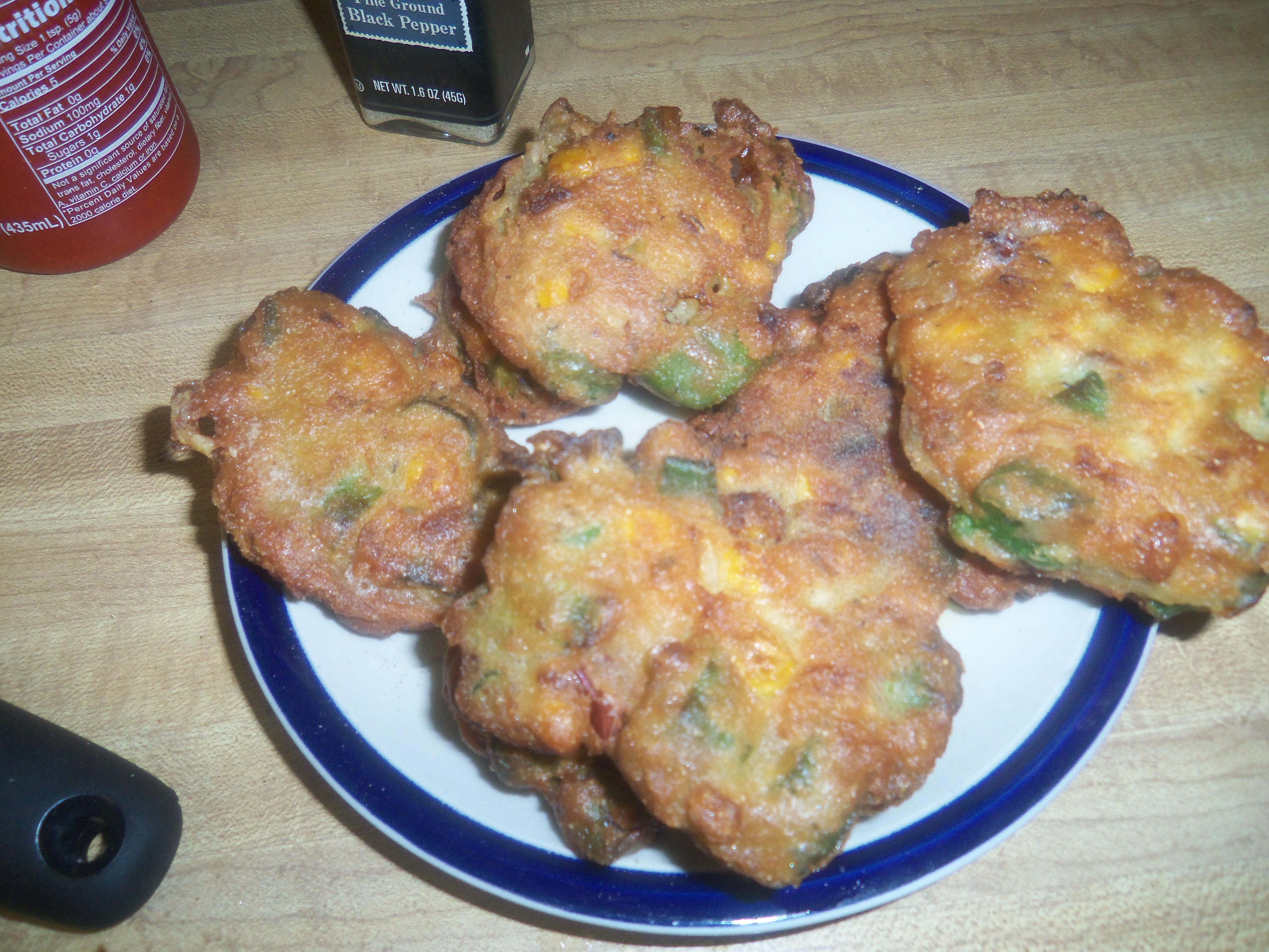 Okra/Corn Fritters Revisited I tweeked the recipe & omitted the dried shrimp. (I returned it & got my money back!) This is my second attempt. Nom Nom! Like Loading... Related